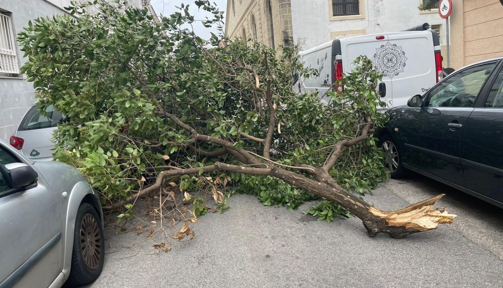 En Jerez, cuya campiña está en alerta naranja por el violento temporal, ya se han producido los primeros incidentes derivados de las fuertes rachas de viento. En la calle Lechugas, a primera hora de esta tarde, se ha caído una rama de gran porte, sin que por suerte haya provocado daños personales.