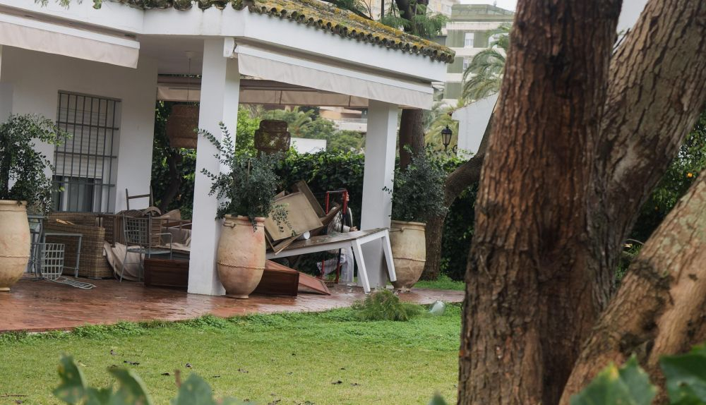 Las porterías que su hijo tenía colocadas en el patio de la vivienda han salido volando. El tornado ha roto la mesa, el armario del porche y una vajilla que había en su interior. "Llamamos a la Policía porque no sabíamos cómo actuar en estos casos. Nos dijeron que el tornado había entrado por Área Sur y había llegado hasta la barriada San José Obrero", detalla la vecina.