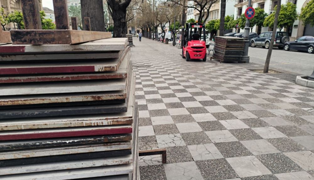 Este martes, los operarios de la empresa adjudicataria de la instalación de las estructuras han iniciado el montaje a todo ritmo. De hecho, antes del mediodía ya se veían las plataformas instaladas del perímetro del bulevar de la alameda así como un importante avance en la tribuna de Santo Domingo.