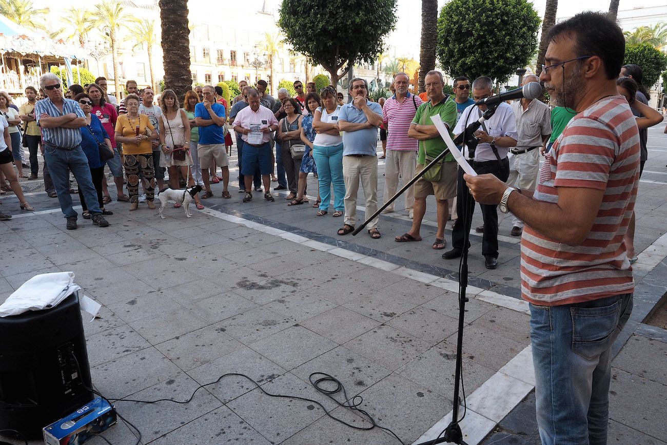 La plaza del Arenal ha sido el lugar escogido para celebrar una manifestación en apoyo a Grecia, que puede ser expulsada del Eurogrupo tras anunciar que someterá a referéndum si acepta las condiciones que le impone la UE para prorrogar el rescate al país heleno. A través de un escrito que se ha leído en la céntrica plaza jerezana, los manifestantes han mostrado la “necesidad de construir un frente social y político europeo militante contra la presión de las instituciones de la UE que lleva a la asfixia de la sociedad griega y a la reanudación de los programas de austeridad, ya implementados durante 4 años por los gobiernos anteriores con resultados catastróficos”.
