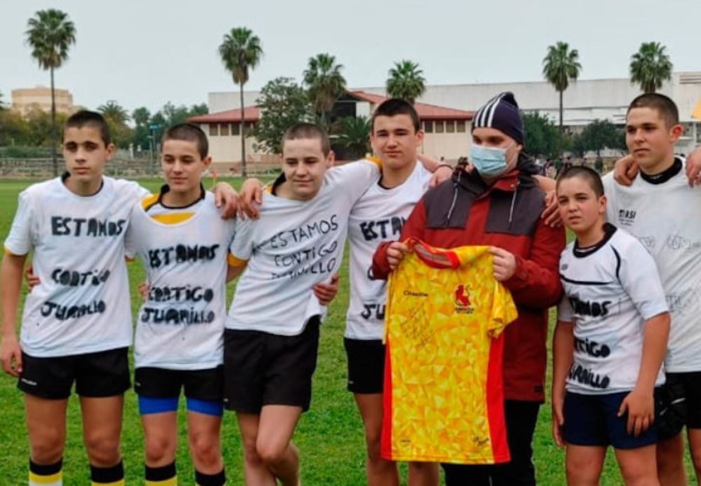 Los jugadores del equipo de rugby sub 16 de la Escuela Los Marianistas de Jerez se han rapado sus cabezas por una buena causa. Los jóvenes han querido dar una sorpresa a su compañero Juanito, que está luchando contra un cáncer desde la pradera de Chapín. El joven fue a ver a su equipo jugar uno de sus partidos y cuando llegó al campo se encontró que todos habían tenido este bonito gesto.