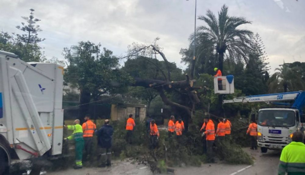Desde primera hora, operarios municipales están trabajando en las diferentes zonas afectadas para retirar los restos de árboles y mobiliario que ha derribado el fuerte viento.