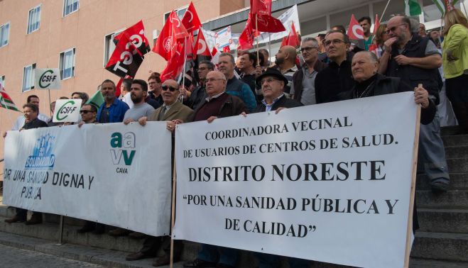 “Cuando se habla de gestión clínica, modernización, colaboración publico-privada, o externalización, en realidad se está hablando de que la sanidad pública está en venta”, lee José María Luque, trabajador sanitario, durante la protesta de este lunes. “Ahora se da en llamar colaboración público-privada a la presencia del sector privado en la provisión de servicios sanitarios públicos, siendo además el negocio ideal: la financiación pública está garantizada, los usuarios nunca faltarán y los beneficios (privados) están garantizados”, añade.