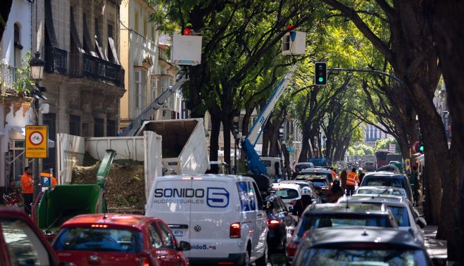 ¿El motivo? Una de las calle más bellas de la ciudad está acicalándose ante la próxima Semana Santa. Trabajos de podas de sus imponentes jacarandas y de calas en la vía pública para diversas reparaciones están colapsando el tráfico, además de haber suprimido temporalmente numerosos estacionamientos en zona naranja.