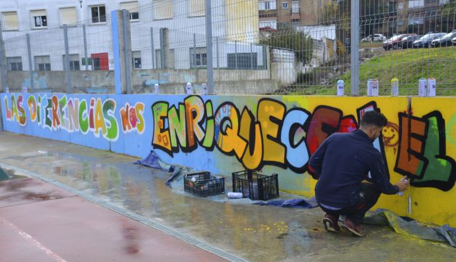 Ganemos Jerez visita el colegio San Juan de Dios, en el que la Asociación de Madres y Padres de Alumnos está materializando el proyecto sobre multiculturalidad por el que fue seleccionado en el concurso Tejiendo Ideas. Se trata de una iniciativa de inclusión y convivencia que consta de varios talleres a lo largo del curso. Ganemos Jerez financió este proyecto (de 1.698 €) gracias al excedente de sueldo de su diputada, Kika González, quien estuvo presente en el nuevo taller de grafitis para hacer pintadas que difundan un mensaje de solidaridad, fraternidad y respeto.
