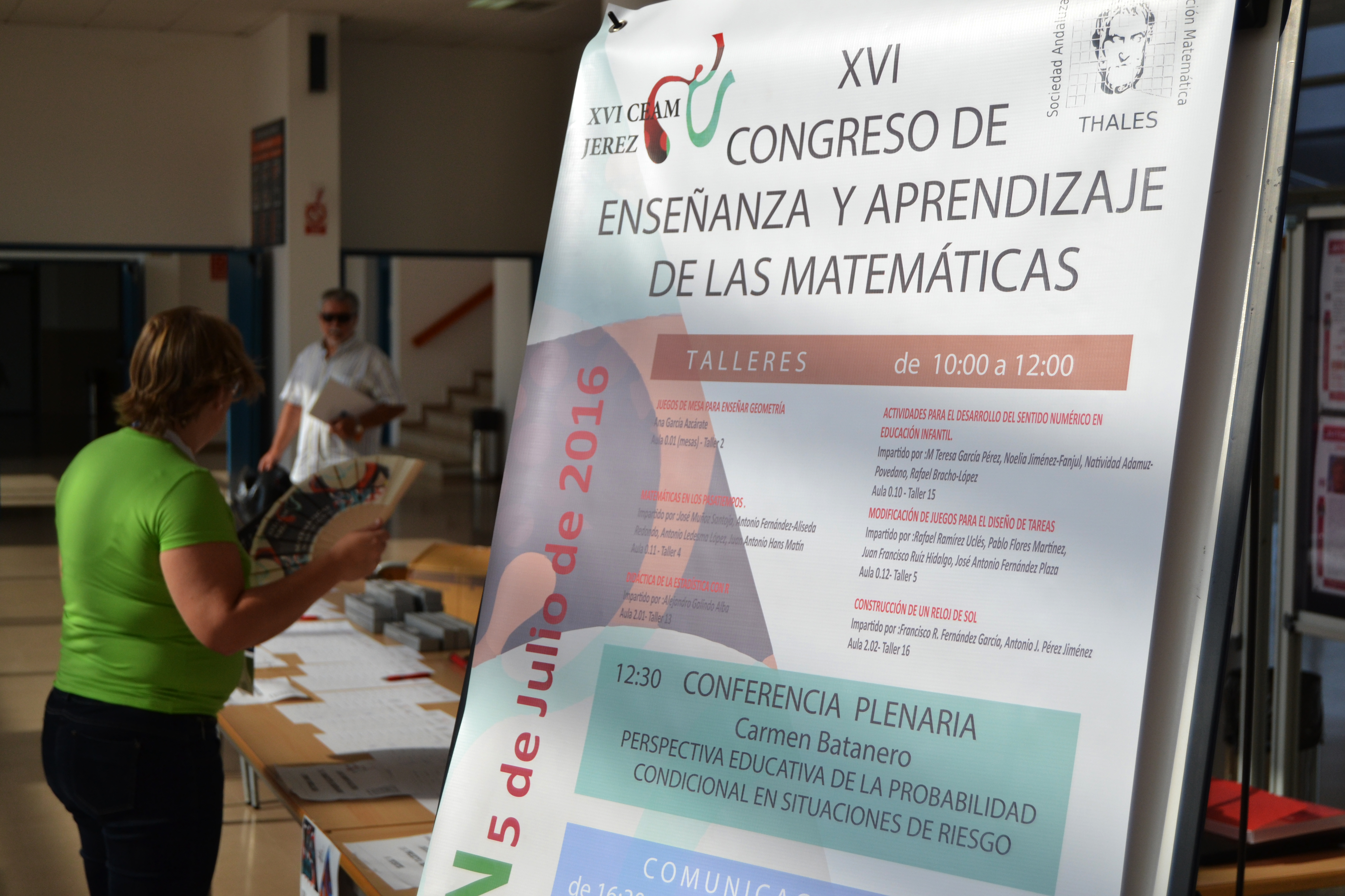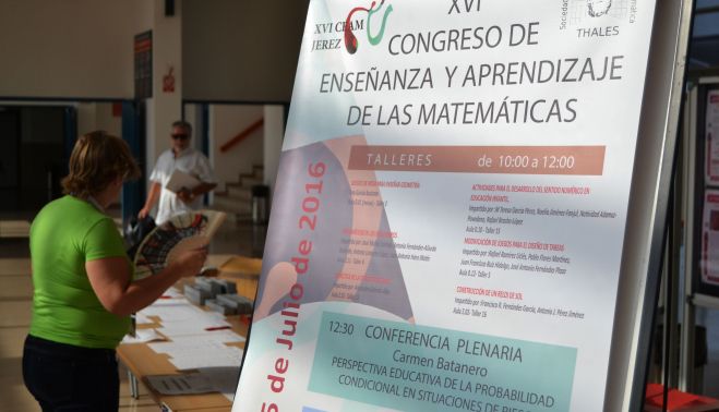 El Campus de Jerez ha celebrado 'XVI Congreso de Enseñanza y Aprendizaje de las Matemáticas' y ha congregado a unos 200 profesores y alumnos hispanohablantes reunidos en torno a esta ciencia. Juan Díaz, profesor de la Universidad de Granada (UGR) especializado en didáctica de la matemática, expone que este cónclave que este año ha acogido el Campus de Jerez está orientado, desde sus inicios en 1982, a la aplicación práctica de las enseñanzas de esta ciencia. Es decir, no versa sobre las ciencias matemáticas, sino sobre la educación enfocada a estas. Se trata de "mejorar la enseñanza" en este campo, apunta el profesor. La presidenta del Comité y delegada de Cádiz de la Sociedad Andaluza de Educación Matemática Thales, Paloma Pascual, explica que este año el comité de organización de la asociación ha escogido el centro universitario de Jerez por sus facilidades de transporte y por su bajo coste hotelero con respecto a otras zonas de la provincia de Cádiz.