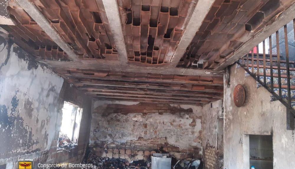 Se ha visto afectado el salón de la vivienda en su totalidad, con desprendimientos de enfoscados de pared y techos; el resto de la casa también se ha visto afectado por humo y altas temperaturas.