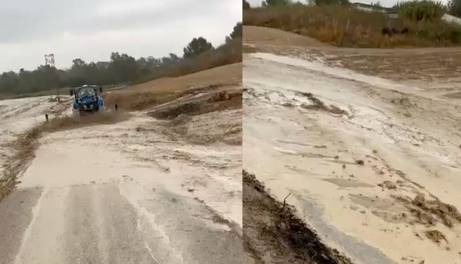 Una fuerte tromba a las afueras de Jerez ha provocado una anegación que ha sido captada por agricultores y difundida en vídeo por la cuenta de Twitter @CadizMeteo, replicada posteriormente (retuiteada) por la Aemet.