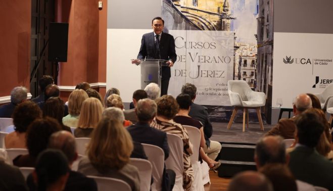 La Universidad de Cádiz está autorizada para implantar un nuevo grado universitario para los próximos cursos que, además, se impartirá en el Campus de Jerez. El anuncio lo ha realizado José Carlos Gómez Villamandos, consejero de Universidades de la Junta, durante la presentación de Cursos de Verano 2025 que organizan el Ayuntamiento de Jerez, la UCA y la UNIA y donde han estado presentes los rectores de ambas universidades, José Ignacio García y Casimiro Mantell; la alcaldesa María José García-Pelayo; el consejero de Universidades, José Carlos Gómez Villamandos y el periodista Vicente Vallés, encargado de dar un coloquio.