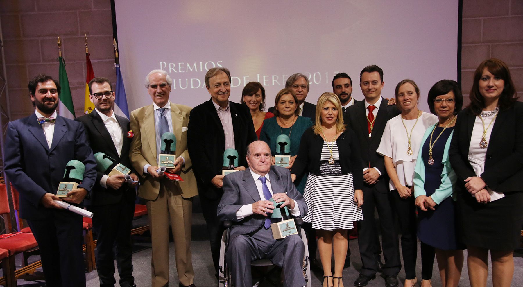 Manuel Romero Bejarano, premio a la Difusión, hizo un breve pero emotivo discurso, en el que animó a los jerezanos a presumir y dar a conocer su patrimonio. Tras quitarse méritos -"no merezco el premio por la altura de los otros premiados"- afirmó que “las cosas que vemos en la ciudad son para sentarnos en un bordillo y echarnos a llorar”, pero animó a la ciudadanía para que luche para que el foráneo se de cuenta “de que Jerez no es sólo crisis y paro”, poniendo como ejemplo su Feria del Caballo y su gran patrimonio monumental.El premio a la Excelencia recayó en Antonio Páez Lobato, conocido en la ciudad como ‘El Rey del Vinagre’, ya que fue él quien apostó por el vinagre de Jerez hace 70 años, siendo el principal artífice de que hoy día tenga el reconocimiento internacional que tiene. Recogió el premio su nieta Carmina, quien afirmó que su abuelo “lleva toda la vida trabajando, desde que empezó subido en una banqueta limpiando vasos en el tabanco de su padre”.