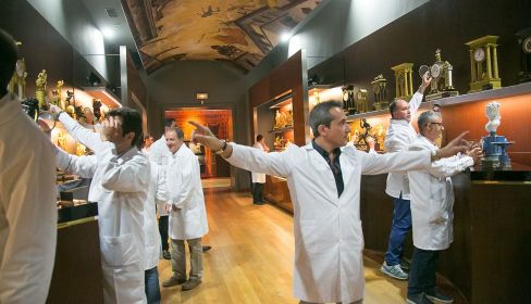 “Silencio absoluto, pies quietos y no moverse”, dice bromeando Galisteo, cicerone en la asamblea, momentos antes de que se empiecen a cambiar la hora de los relojes. Inmediatamente empiezan a sonar uno a uno, creando un ambiente mágico en un lugar que ya de por sí lo es. Sin embargo, llama la atención que muchos de los que manipulan las manecillas no conocían, hasta este fin de semana, la existencia del museo. Lo reconoce el propio presidente de la Anpre , que lo visitó por vez primera el pasado julio y que considera que “no se vende al exterior como debería”, cuando, por ejemplo, sí había conocido museos similares en el norte de Europa.
