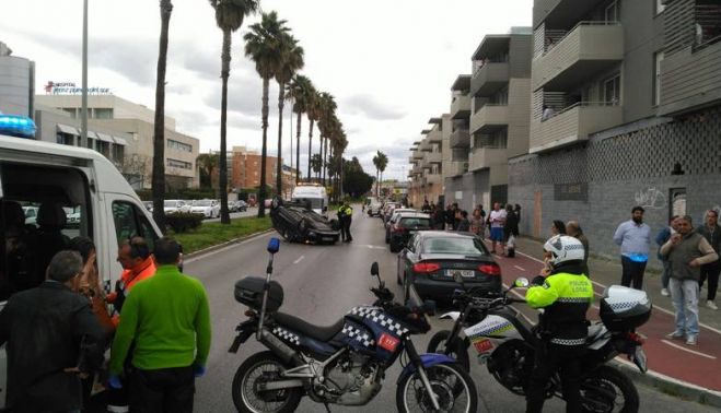 La conductora ha salido por su propio pie del vehículo y se dolía de un brazo, siendo asistida de inmediato por los servicios sanitarios de emergencias y trasladada al Hospital. La Policía Local reguló el tráfico en la zona y apoyó la retirada del vehículo volcado de la vía pública.