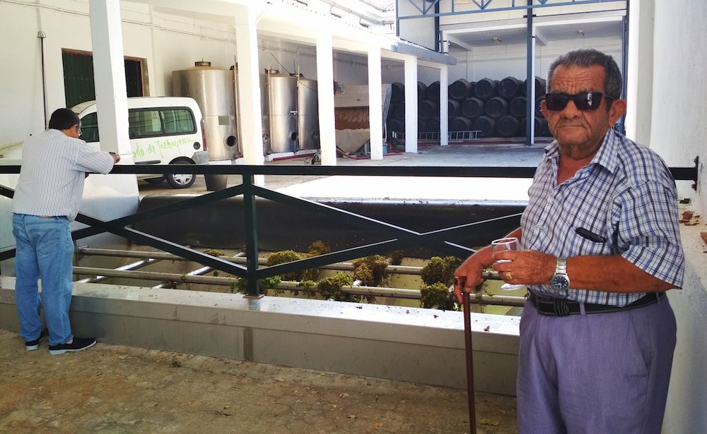 A las 13:00 horas, el ritmo en las cooperativas se va animando. Se percibe cierto aire de excitación porque comienza la campaña, la que dará los frutos de todo un año de trabajo, constancia e ilusiones. Es llamativo cómo el lagar está rodeado de espectadores, que no se pierden detalle del inicio de vendimia. La mayoría de ellos son jubilados que se han dedicado toda la vida a la viña. Y, un año más, necesitan vivir la vendimia como dosis anual vital para el espíritu.