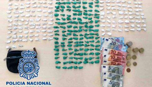 En el cacheo realizado al sospechoso, se halló entre sus pertenecías la papelina que trataba de vender junto con otras 305 del mismo tamaño, las cuales contenian cocaína. Así mismo se intervinieron 110 euros fraccionados en billetes de distinto valor con el fin de facilitar la venta, en base a los indicios sólidos que indicaban un tráfico de drogas el varón, de veinticuatro años de edad y al que le constan cinco antecedentes previos por la comisión de distintos delitos, fue detenido y conducido hasta las instalaciones de la Comisaría de la Policía Nacional en la Avenida de la Universidad, donde ingresó en el área de calabozos
