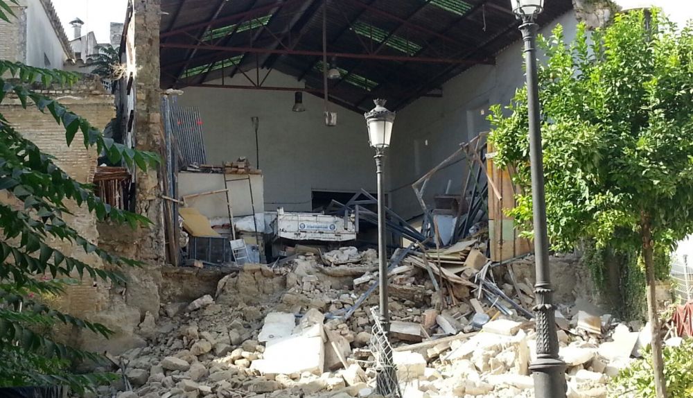 La finca en la que se ha producido el derrumbe hace las funciones de almacén de una empresa constructora que, por otra parte, el pasado febrero veía como parte de este mismo muro se desprendía sobre la plaza situada en sus bajos, vallando la propia empresa el perímetro para evitar males mayores. Desgraciadamente, las últimas y fuertes lluvias han contribuido a su completo derrumbe.