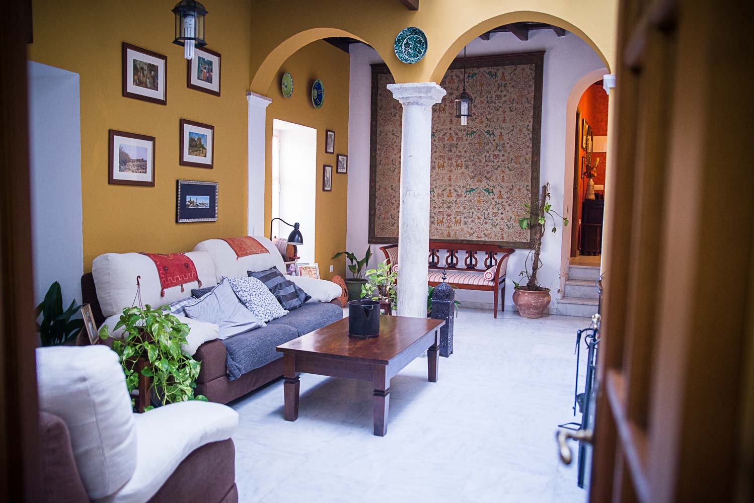 La pareja adquirió la que hoy es su vivienda en 1998, una época, aseguran, en la que aún era posible comprar “relativamente barato en el centro” ya que todavía no se había anunciado la Ciudad del Flamenco, que encareció el suelo en todo esta área gracias a los especuladores y a las grandes inmobiliarias que adquirieron hasta 50 casas para su reforma y transformación en apartamentos. Sin embargo, no fue hasta un 11 de septiembre de 2002, un año después del terrible atentado a las Torres Gemelas de Nueva York, cuando Carmen y Eloy se establecieron en su hogar. Atrás quedaba un largo año de reformas, con la visita constante de los arqueólogos municipales al ser la suya una casa catalogada y un disgusto, el de comprobar cómo okupas habían accedido al inmueble y destrozado unos armarios de una gran belleza que habían permanecido intactos pero que acabaron sirviendo de leña para hacer fuego, o unos sanitarios antiguos que habían decidido mantener y que también acabaron destruidos.