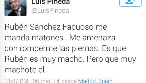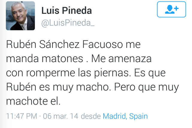 La misma obliga a Pineda a tuitear durante 30 días que ha sido condenado por difamar en Twitter a Rubén Sánchez, periodista y portavoz de la asociación de consumidores Facua, al que insultó llamándole "golfo", "imbécil", "vago" o "corrupto", y al que acusó de emitir facturas falsas y al que además tendrá que mencionar. El hecho de que Twitter limite a 140 los carácteres por mensaje, obligará a Pineda a usar "las herramientas disponibles" para que pueda aumentar dichos carácteres. Igualmente, la sentencia especifica que tendrá que publicar sus tuits en horario de 9 a 14 y de 17 a 22 horas, tendrá que eliminar de su cuenta de dicha red social los 57 comentarios ofensivos contra Sánchez y deberá indemnizarlo con 4.000 euros más los intereses legales desde la fecha de la demanda.