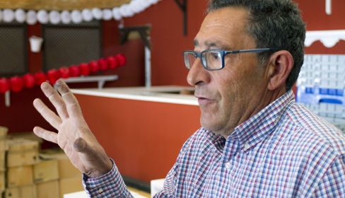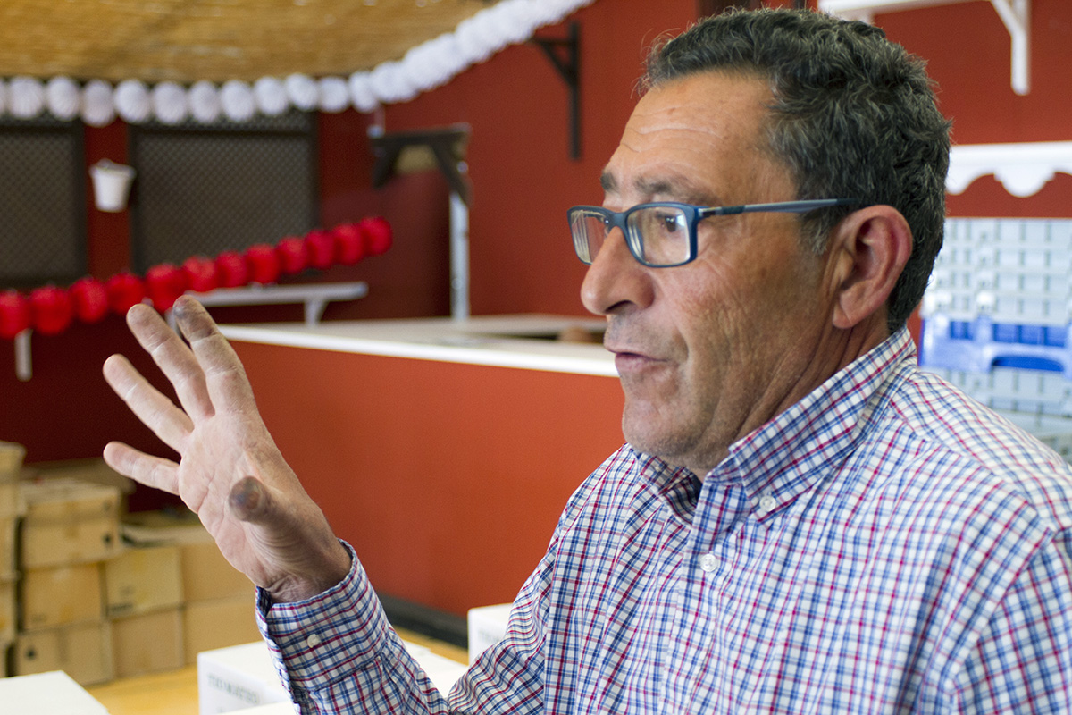 A Clemente lo pillamos rematando la fachada con varias ramas floridas de buganvilla. “Poco más queda por poner. Sólo las flores, que llegan esta tarde”, comenta. En total, de montaje han sido necesarios “unos 20 días a piñón, sábados y domingos incluidos”, nos explica, entre cuatro y cinco personas. Para que la caseta haya sido una realidad se han tenido que invertir cerca de 10.000 euros, que ponen entre los socios y el casetero que se encarga de trabajarla. A saber. Lo que es el espacio, en este caso dos módulos, son 2.500 euros, aunque lo normal es que este dinero lo ponga la bodega que se encarga de suministrar el vino siempre y cuando logre vender un mínimo de botellas. Dar de alta la luz y agua y contratar un seguro conllevan otros mil euros. Alquilar la tarima del suelo y los baños portátiles otros 840, mientras que la fachada y la decoración interior se llevan unos 5.500. “Antes por lo menos si el Ayuntamiento te concedía un premio –Los Pollitos se ha llevado unos 15 entre primeros, segundos y terceros- amortizabas un poco los gastos de la decoración, pero hace ya tres años que no hay premio en metálico, sólo el reconocimiento. Y ya tampoco era como antes, que un primero eran 500.000 pesetas. Eso hace que las demás casetas tampoco se esmeren como antes”.