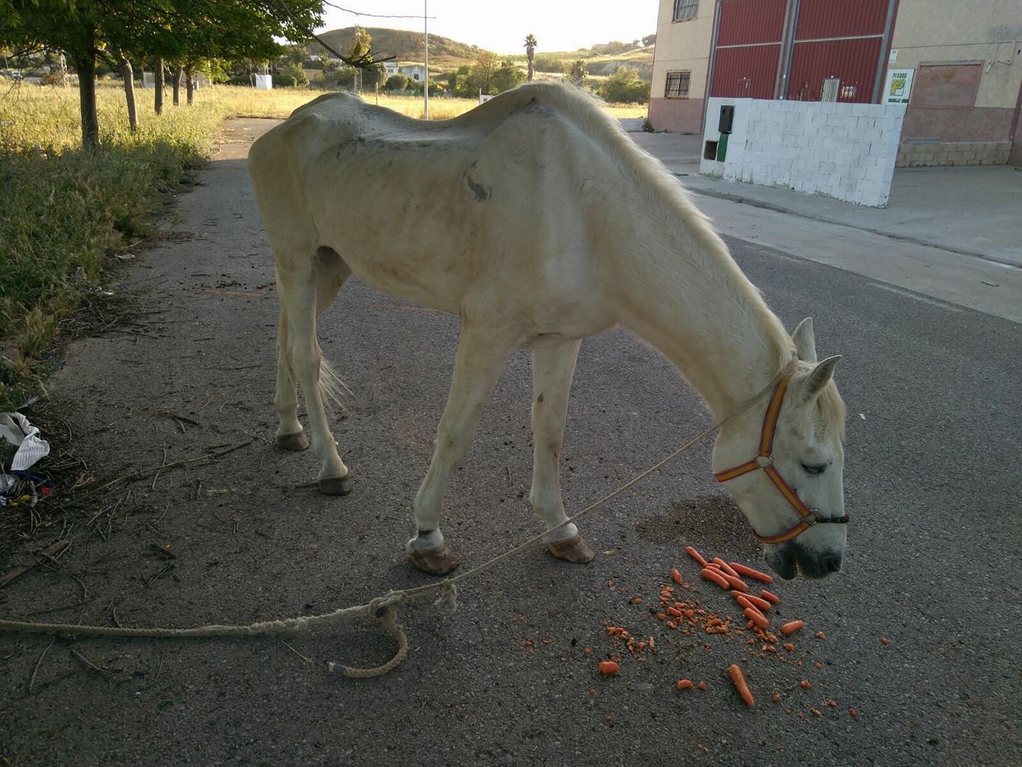 Al inicio de la Feria del Caballo, Cristian Oliva y Abigail Raposo encontraron al equino atado a un árbol del parque industrial. Ahora se encuentra en la perrera y pronto será trasladado a un santuario de Sevilla.