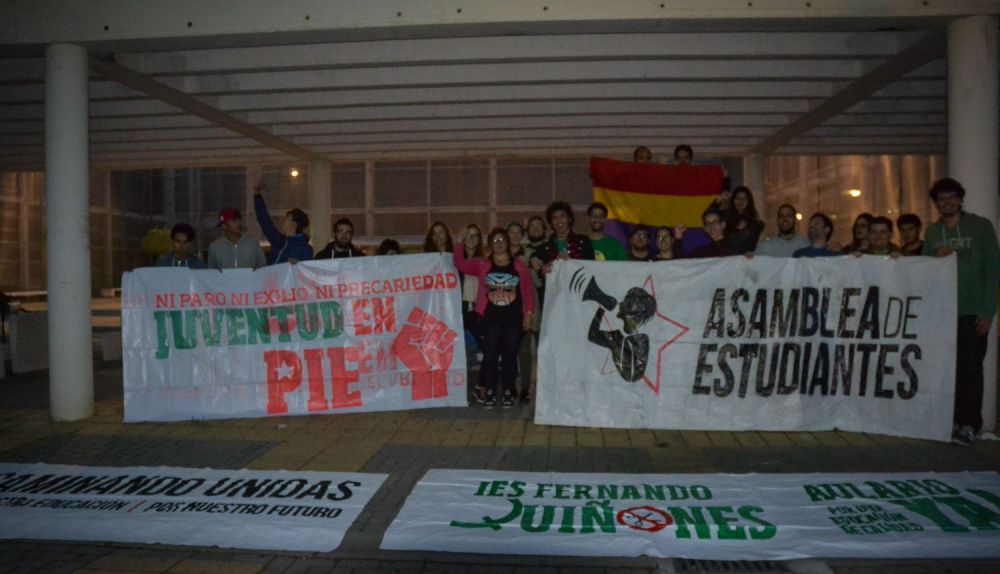 “Un amigo mío trabaja para pagarse la carrera, pero como trabaja no le da tiempo a prepararse bien las asignaturas y puede que suspenda alguna, que paga más cara… es un círculo vicioso”, dice Cristina. “Creemos que la universidad nos pertenece a los alumnos, no a los bancos”, añade Jesús Merchán, portavoz de la Asamblea de Estudiantes, que pone énfasis en la situación de centros escolares como el IES Fernando Quiñones.