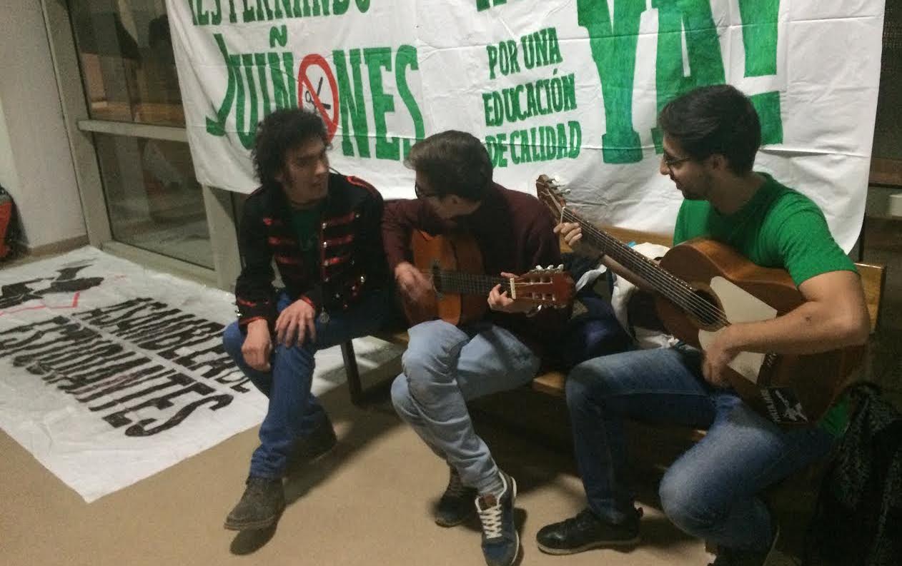 Esa misma inquietud comparten muchos de los que la rodean. Está sentada en un banco del campus junto a varios amigos durante el encierro convocado por la Asamblea de Estudiantes como parte de las acciones de protesta por las leyes educativas actuales. Vienen con provisiones, bocadillos y zumos, para pasar la noche. En un aula cercana piensan ver una película, tener una asamblea y pintar pancartas para matar el tiempo. Hasta uno de ellos saca una guitarra y comienza a cantar El abuelo Frederick de Los Delinqüentes. La reivindicación no está reñida con la diversión.