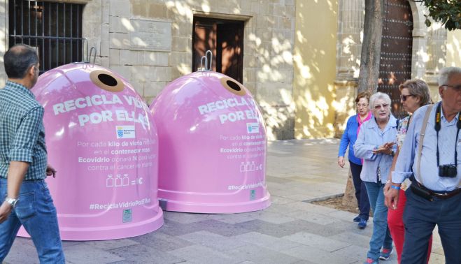El Ayuntamiento de Jerez y Ecovidrio impulsan la campaña Recicla vidrio por ellas, con motivo del Día Contra el Cáncer de Mama, que se celebra el próximo 19 de octubre. Hasta esa fecha, la ciudadanía podrá participar en la campaña haciendo uso de los diez contenedores de color rosa ubicados en puntos emblemáticos de Jerez. Por cada kilo de envases de vidrio que se deposite en los contenedores, Ecovidrio donará un euro a la Fundación Sandra Ibarra de Solidaridad Frente al Cáncer. Desde la organización destacan que los dos situados en calle Consistorio simulan simbólicamente dos mamas. En la presentación de dicha campaña, el teniente de alcaldesa de Medio Ambiente, José Antonio Díaz, señala que que "gracias nuevamente a la colaboración de Ecovidrio ponemos en marcha esta campaña para movilizar y concienciar a la ciudadanía", y anuncia que hay contenedores en calle Larga, Consistorio, plaza Belén junto a Plateros, plaza del Arenal y plaza del Banco.