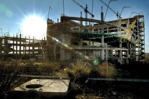 Las obras del Palacio de Congresos de Jerez se paralizaron hace casi seis años, justo cuando el negocio del ladrillo descubrió de repente que sus pies eran de barro. El crack dejó en la ciudad algunas moles de escombros dignas de ser estudiadas, ésta de la que hablamos o cinco majestuosas grúas junto al Sherry Golf en lo que iba a ser un complejo hotelero de lujo. La Vuelta a España se volcará hacia el ala Este de la ciudad, obviando la antigua circunvalación que, a la altura del hospital, ofrece una visión fantasmagórica de los excesos de hace unos años, cuando la ciudad (como muchas otras en España) era el paraíso de la construcción desenfrenada.