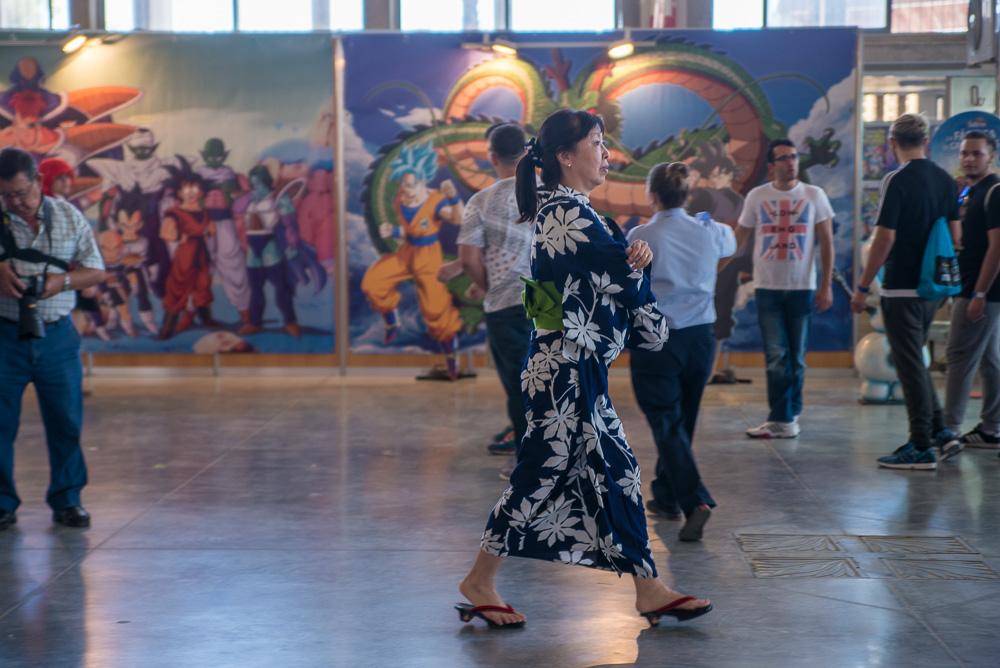 Unos padres acompañan a su hijo y a su amiga, ambos de 9 años. Los dos van trajeados, se han iniciado desde pequeños en la afición del cosplay, pero admiten que es la primera vez que acuden al salón imitando a un personaje de ficción. "¡Dile qué es lo que quieres comer!", le dice la madre al pequeño, a lo que este contesta con una sonrisa: "Bolitas de pulpo". Comenta que ven el anime juntos, la serie de la cual van caracterizados, y que su hijo tiene ganas de almorzar pulpo porque lo comen en esa serie japonesa que ven. Todo queda en familia. Los padres se muestran encantados de que él disfrute de la cultura nipona, una como otra cualquiera. ¿Reciben algún tipo de acoso en el colegio? "Para nada, ellos son los que marcan tendencia. Son los líderes", responde el padre. Se marchan. Normalmente en estos eventos eres devorado por la masa que intenta entrar en el recinto cubierto. Pero en este caso no, van por su propio pie. Menos público que en otras ediciones. En un principio parece que el invento no funciona.