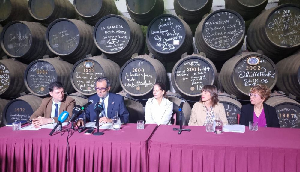 El vicerrector de Cultura de la Universidad de Cádiz, Jacinto Porro, junto a la directora de Comunicación de Williams & Humbert, Cristina Medina, la vicepresidenta tercera y diputada de Igualdad, Carmen Collado, y la delegada de Economía, Hacienda, Patrimonio y Recursos Humanos del Ayuntamiento de Jerez, Laura Álvarez, ha presentado hoy la convocatoria de premios a los mejores trabajos inéditos de investigación del Congreso del Centenario de ‘Lola Flores: un icono de la cultura española’, que se desarrollará entre el 9 y el 11 del próximo mes de noviembre.