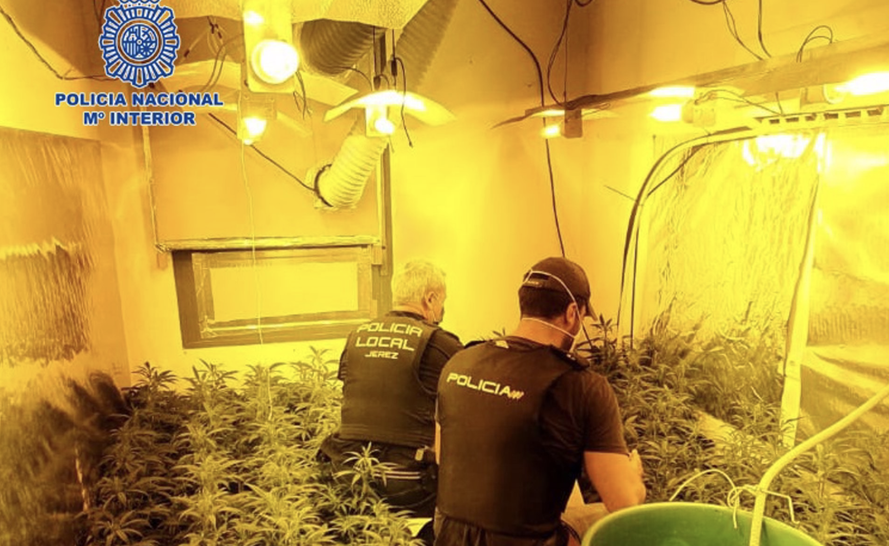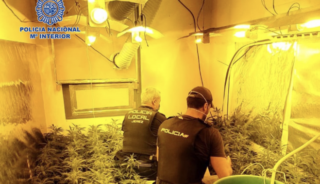 Agentes de Policía Nacional han detenido en Jerez de la Frontera, dentro de la operación Turquía enmarcada dentro del Plan Verde contra el cultivo de marihuana, a dos hombres de 35 años de edad como presuntos autores de un delito contra la salud pública y defraudación de fluido eléctrico. Los detenidos son los presuntos responsables de una completa instalación de cultivo y tratamiento de marihuana ubicada en una vivienda unifamiliar dentro del término municipal.