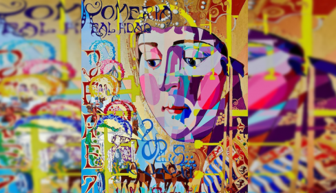 En un comunicado, la hermandad del Rocío de Jerez prosigue su descripción: "Se observa un encadenamiento de todos los elementos que componen la obra hasta configurar un bello entramado con los ojos de la Virgen como poderoso centro de interés. En continuación saltan a la vista detalles del cartel, en segundo plano. En el centro se aprecian dos círculos, en orden vertical".