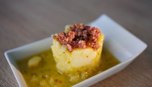 Esa filosofía también se refleja en algunos ingredientes concretos, como el vinagre utilizado en varias elaboraciones. En platos aparentemente sencillos como las papas aliñás, el detalle marca la diferencia. "Usamos un aceite muy bueno y usamos un vinagre que no lo hay en el mercado. Es un vinagre propiedad de la familia", señala. Se trata de un vinagre muy antiguo procedente de la bodega familiar, de Valdespino, que aporta un toque distintivo a platos como gazpachos o ensaladas.