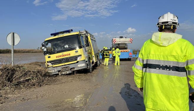 La intensa tromba de agua que durante cuatro horas dejó más de 75 litros de agua por metro cuadrado en muchas zonas rurales de Jerez también afectó a un camión de bomberos, que quedó atascado en la carretera que une Torremelgarejo con Nueva Jarilla, una de las ELA más afectadas por las condiciones meteorológicas adversas.