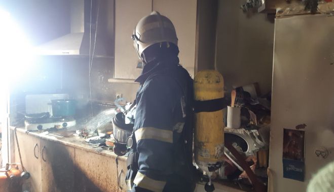 Cuando han llegado los efectivos de Bomberos se han encontrado a esta persona en el portal, siendo atendido por los servicios sanitarios presentes, quienes le han trasladado inmediatamente al hospital en estado grave. Bomberos han extinguido un incendio que ha afectadi principalmente a la cocina y al resto de la casa por el humo producido. Se ha acudido a la llamada de emergencia con una autobomba rural pesada y otra urbana pesada, un vehículo autoescala y vehículo de rescate. La intervención ha comenzado a las 13:05 horas y ha finalizado a las 13:45 horas de este pasado domingo.