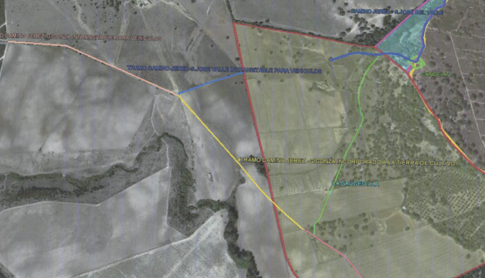 Los caminos de Jerez a Gigonza y de la Cañada de Los Pinos, en sus tramos que discurren por los parajes de La Saucedilla y de La Loma de Malabrigo entre las carreteras CA-3110 Torrecera-La Barca y A-398 Arcos-Medina Sidonia fueron usurpados y cortados por propietarios de fincas de la zona, que ahora deben desocupar tras la sentencia del juzgado.