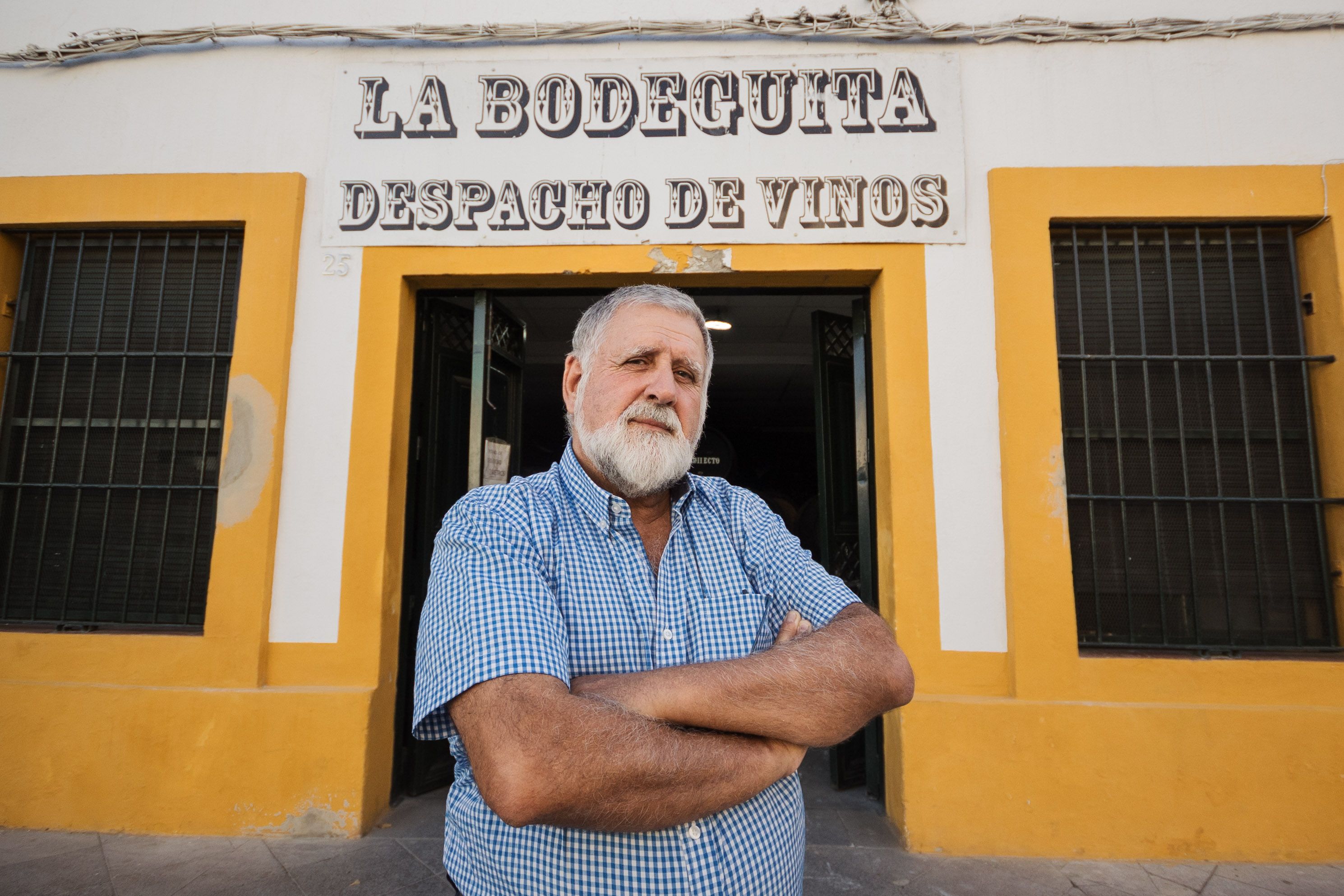 La Bodeguita de El Pelirón, histórico barrio jerezano, no es un tabanco y no es un bar: solo venden vino a granel. La clientela lleva sus propios envases, casi todos de un litro, para rellenar. Estamos ante un negocio que se puso en marcha en 1968, hace más de medio siglo, cuando este tipo de establecimientos proliferaban por muchos rincones de Jerez. Ahora no son tantos pero se está dando la circunstancia de la apertura de nuevos establecimientos y un cierto resurgir.