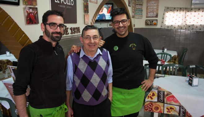 A diferencia de hoy, en los que El Pollo es conocido sobre todo por sus desayunos XXL —como figura escrito en una de sus paredes—, en aquellos tiempos eran las comidas, servidas a los trabajadores del incipiente polígono, sobre todo los de la azucarera, las que tenían más salida y fama. Rafael tenía 14 años cuando empezó a echar una mano en el negocio, compaginando sus estudios en el colegio de La Salle. De esa primera época guarda muy buenos recuerdos, y destaca las juergas flamencas que en muchas ocasiones se armaban entre esas cuatro paredes. “En El Portal había una venta, a la que llamaban Flamenca, en la que empezaron Tío Borrico, Miguel de los Reyes, Morao o Parrilla. También Agujetas el viejo, que tenía además allí la fragua. Paraba en la venta sobre las dos de la tarde y a las tres ya estaba cantando. Había veces que le daban la una de la mañana”.