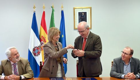 La alcaldesa jerezana, María José García-Pelayo, y el presidente de la Cámara de Comercio, Industria y Servicios de Jerez, y de Cámaras Andalucía, Javier Sánchez Rojas, han firmado este martes el convenio para la cesión a favor de esta entidad de las citadas instalaciones, donde se implantará un proyecto estratégico que contribuirá al desarrollo tecnológico y económico de Jerez y de la región de Andalucía Occidental.