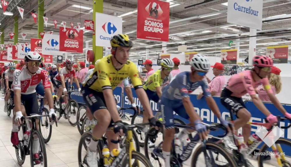 Vídeo | El paso del pelotón por los pasillos del Carrefour Sur de Jerez