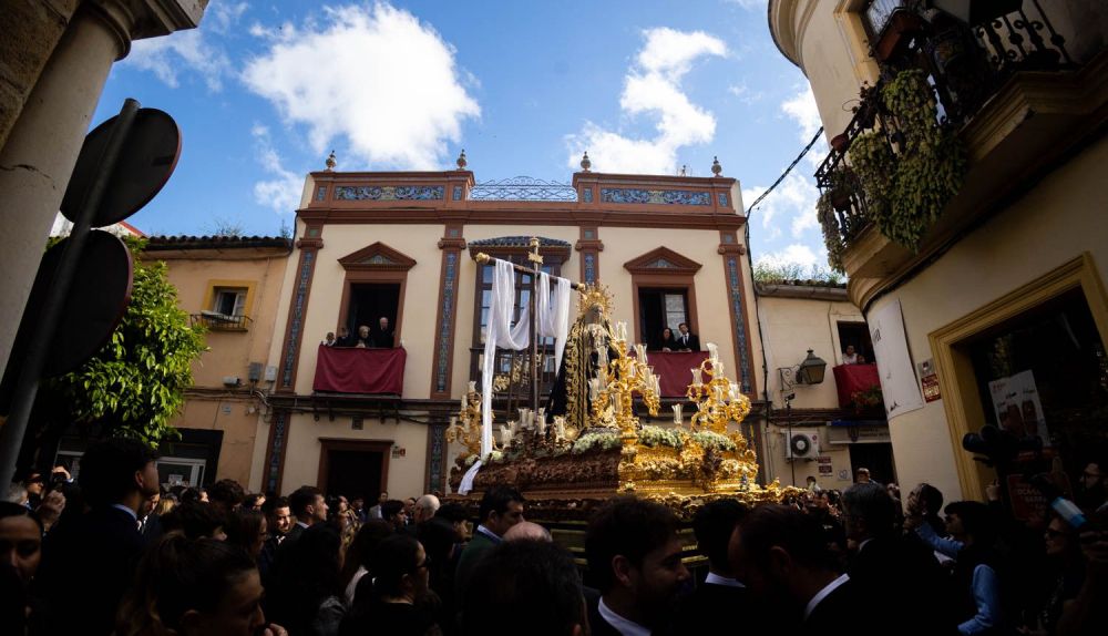 Recordar que el pasado año la Concepción Coronada se tuvo que volver desde el puente de la calle Arcos hacia su templo. Este 2025 está explayándose en toda su extensión con un numeroso cortejo de hermanos y con dos pasos, especialmente el palio, que está tomando unas hechuras grandiosas gracias al desarrollo de su transformación o más bien de su nueva configuración, en la que se sigue avanzando. Por cierto, el arreglo floral del mismo fue exquisito.