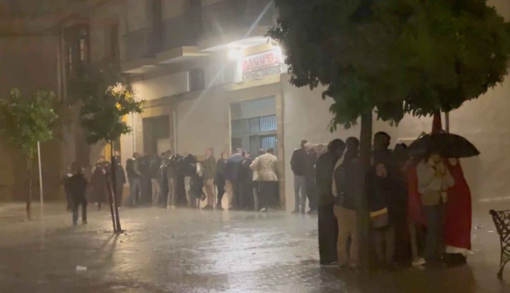 Decenas de personas, que no contaban con paraguas, se han resguardado como han podido bajo balcones, cornisas y soportales cercanos. Hasta debajo de árboles se han colocado varias personas, incluidos varios nazarenos de la Hermandad de la Cena, para tratar de protegerse de una lluvia que ha aguado el final de la jornada de un Lunes Santo que comenzaba esperanzador.