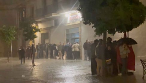 El aguacero ha sido breve pero contundente. De haberse retrasado la entrada de la cofradía apenas unos minutos más, las consecuencias podrían haber sido considerables tanto para el patrimonio artístico como para los nazarenos y músicos que aún se encontraban en la vía pública.
