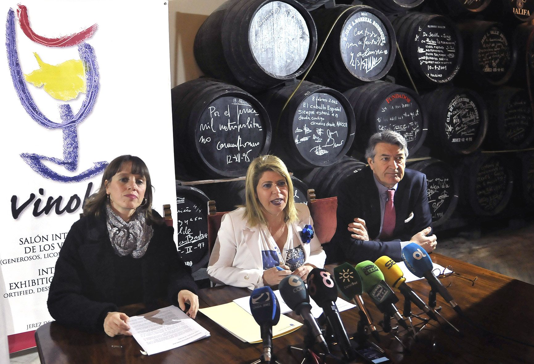 La alcaldesa Mamen Sánchez y la teniente de alcaldesa de Empleo, Recursos Humanos y Deportes, Laura Álvarez, acompañada del director del Consejo Regulador del Vino, César Saldaña, presentan Vinoble, un espacio que sirve para "visibilizar la calidad de los productos de las bodegas de Jerez y como evento en el que nuestras empresas y todas las expositoras puedan hacer negocios”. La regidora insiste en que Vinoble sirve para "reivindicar la cultura del vino en general y la nuestra en particular y destacar la importancia de nuestro Marco en el mapa enológico internacional”.