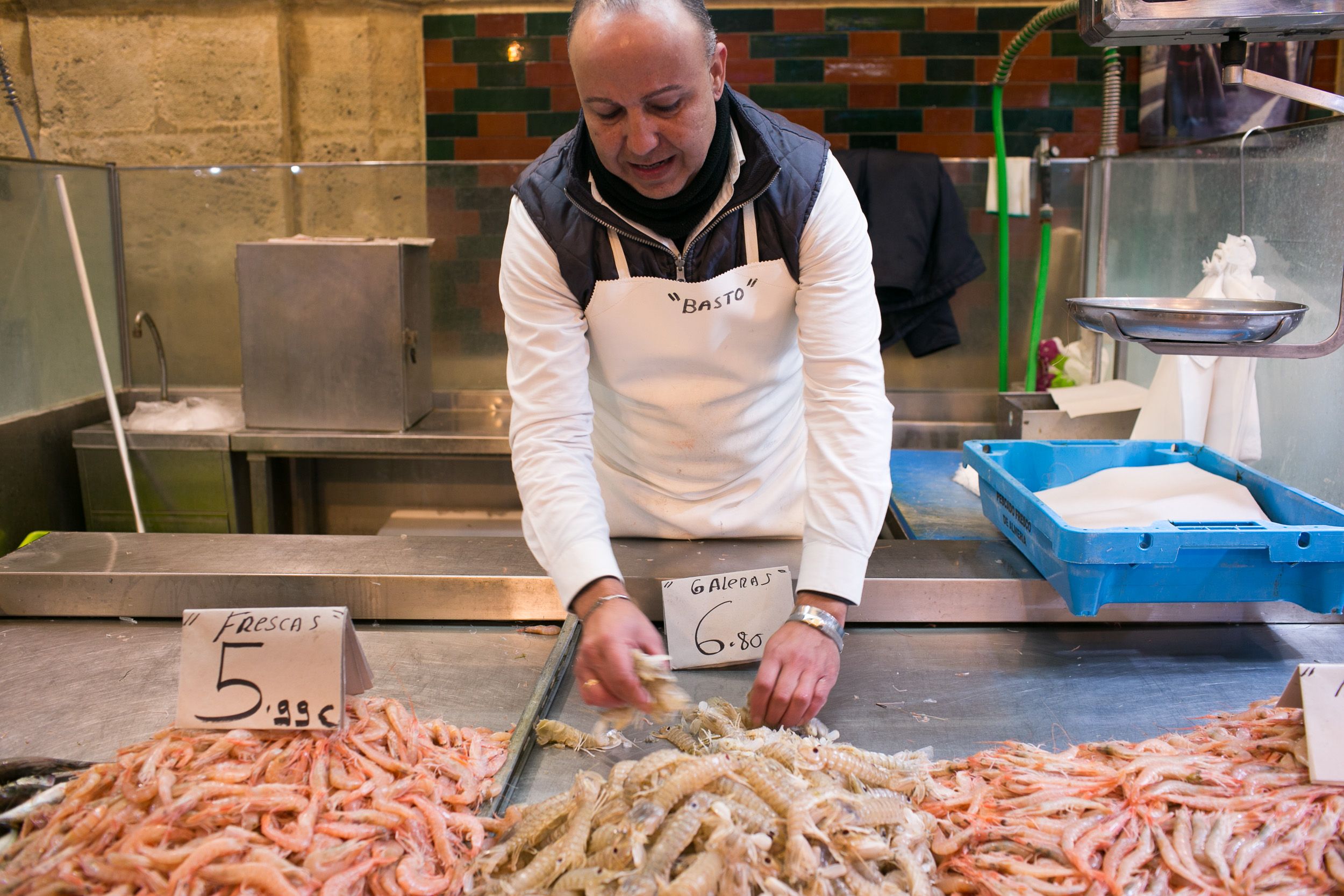 Agustín lleva en la sangre su amor por el pescado y el marisco. “Esto te tiene que gustar, lo tienes que llevar dentro”, dice, y él prácticamente no ha conocido otra cosa desde que su padre comenzara a regentar un puesto que quiso diferenciarse del resto. “Había mucha competencia y todos venden lo mismo”, dice el pescadero, que con 15 años ya iba con José, su padre, a la lonja de Sanlúcar, a la subasta, donde adquiere el género. Cuando terminó la mili, cambió las maniobras militares por las galeras y las gambas, “sin esto no funciona el puesto”, dice orgulloso Agustín, que cuenta que su padre era “el que más gambas vendía de Jerez”, ya que llegó a regentar hasta ocho marisquerías.