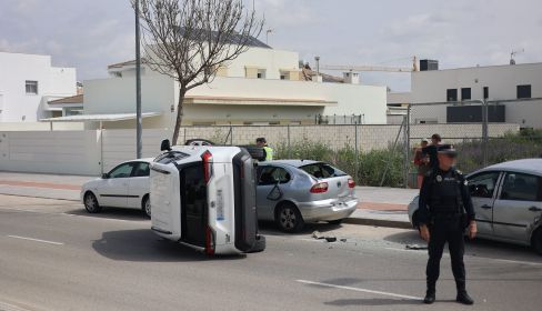 Un accidente en una avenida de Jerez ha movilizado en la mañana de este miércoles a servicios de emergencia y policiales tras quedar volcado de lado un turismo.