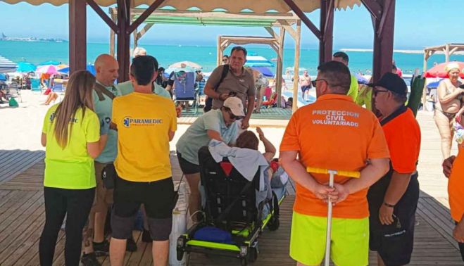 El operativo incluyó la intervención del equipo médico de la fundación, especializado en traslados humanitarios, que acompañó a la paciente durante todo el proceso. A su llegada, fue recibida en la zona reservada para Personas con Movilidad Reducida (PMR), donde ya esperaban equipos de Protección Civil, Policía Local, servicio de Salvamento y Socorrismo de Playas Paramedic, así como personal municipal de Seguridad y voluntarios.