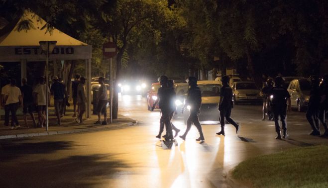 El árbitro pita el silbato y el cronómetro echa a andar. Probablemente los 90 minutos más largos de muchos xerecistas. Dani Pendín, entrenador del Xerez D.F.C., y Carlos Fontana, del Xerez C.D., dirigen con entusiasmo a sus equipos. Y la afición local lo recuerda con gritos de "Pendín traidor" y abucheos también para el presidente de la entidad, José Ravelo. Dos figuras históricas del xerecismo que cargaron durante toda la noche con la cruz de lo que es un verdadero conflicto social en el deporte de la ciudad. “Jerez no se merece esto” comenta un aficionado, “estamos manteniendo al Xerez C.D. colaborando como buenamente podemos porque no tenemos un duro” asegura otro.