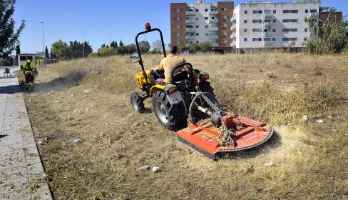 En los próximos días se efectuarán estas labores en parcelas situadas en las siguientes ubicaciones: Hijuela del Agrimensor, Mar de Mármara, calle Afrodita con Zeus, calle Azorín, calle Sierra del Pinar,calle Antonio Herrera Jiménez, calle Fray Pedro Egipciano/Maestro Sierra, Avenida Torresoto, Barriada El Portal y Gibalbín. La limpieza y desbroce de las parcelas se lleva a cabo mediante maquinaria, un tractor con el zapo de cadena y martillo, y operarios con desbrozadora, que intervienen en las zonas donde el tractor no pueden entrar a la vez que retiran residuos. Los trabajos mencionados se realizan, en 80 solares en total, por la empresa Gesser. Estos se encuentran ubicados en todas las zonas de la ciudad, incluida la rural.
