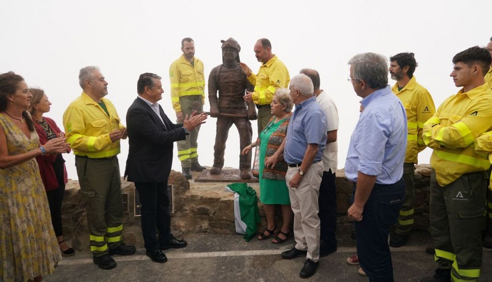 El consejero de la Presidencia, Interior, Diálogo Social y Simplificación Administrativa de la Junta de Andalucía, Antonio Sanz, ha desvelado una estatua este sábado que homenajea a Carlos Martínez Haro, bombero forestal fallecido en 2021 en un incendio en Sierra Bermeja, paraje ubicado en la localidad malagueña de Estepona.