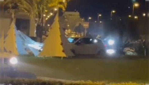 Podría haber sido el Grinch, pero fue un conductor ebrio el que arrasó con la decoración navideña de una rotonda en Vélez-Málaga (Málaga). Los hechos ocurrieron la pasada Nochebuena, cuando un Renault Clio se subió a la rotonda y arrolló varios árboles navideños luminosos instalados en el lugar. El impacto fue suficiente para destrozar buena parte de los elementos decorativos y alterar el entorno urbano. Como consecuencia del choque, la parte delantera del turismo quedó totalmente destrozada en su lado izquierdo.